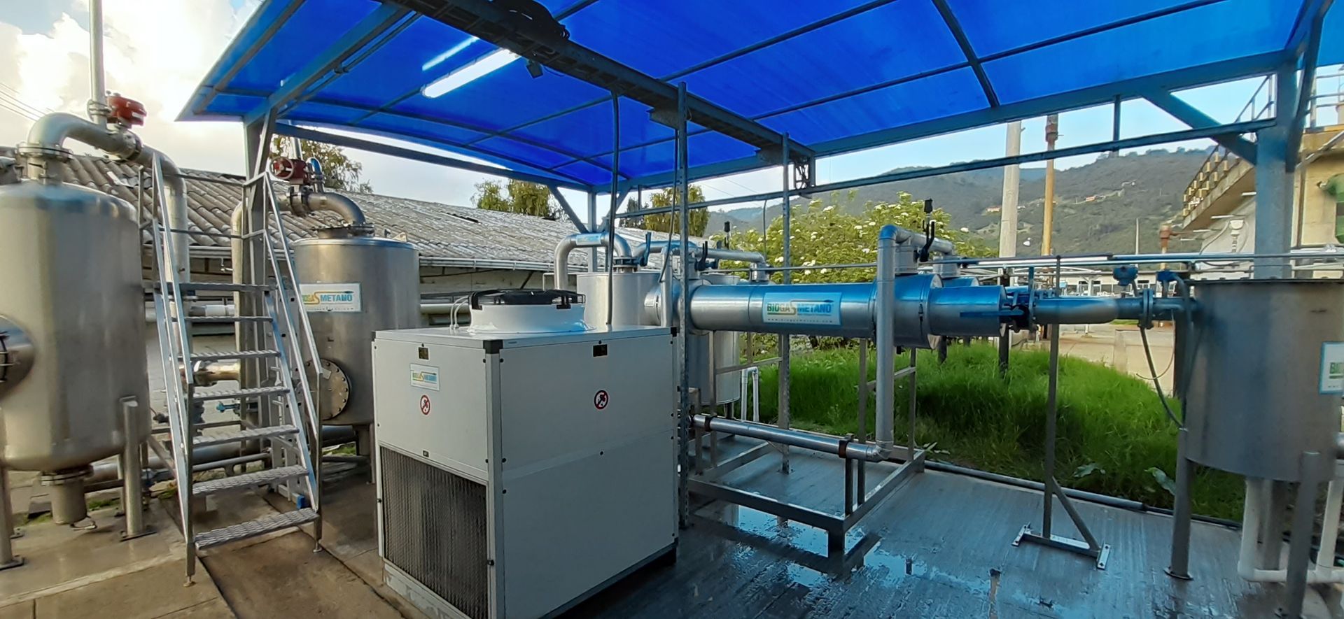 El biogás de las dos fuentes es mezclado para posteriormente ser depurado, en esencia de humedad y Acido Sulfhídrico, luego almacenado en una membrana gasométrica para posteriormente ser enviado a las unidades CHP.